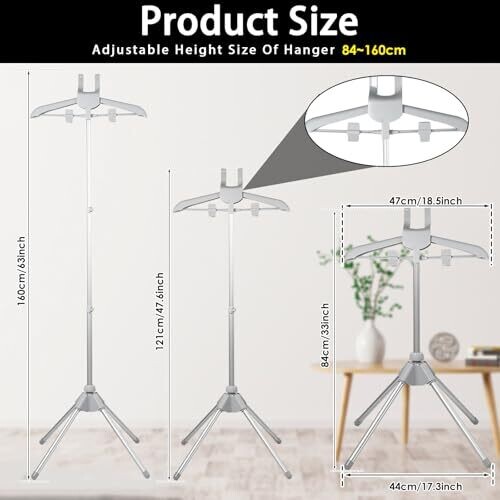 Elevate your ironing routine with a sturdy stand that keeps garments elevated and wrinkle-free. Features adjustable height, 360-degree rotation hanger, foldable and detachable design for compact storage. Includes handheld ironing board, scraper, and storage bag for organized steaming.