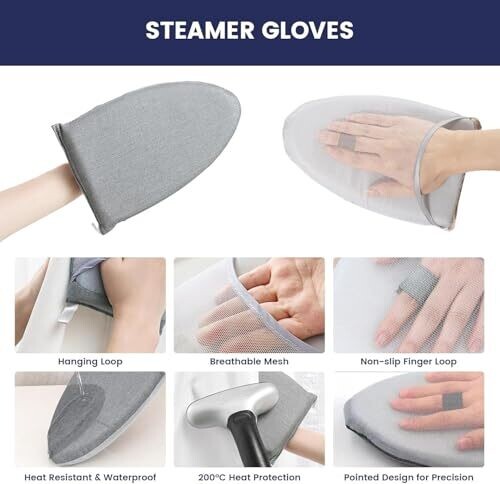 • Garment Steamer Ironing Glove with Finger Loop, Heat Resistant Anti Steam Glove for Clothes