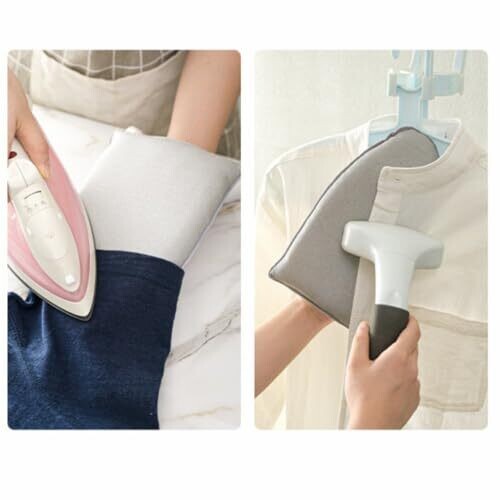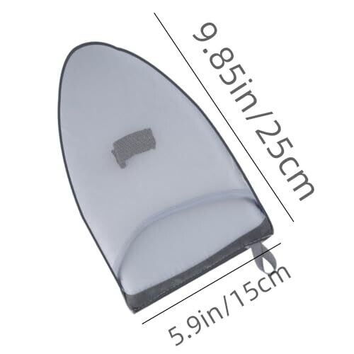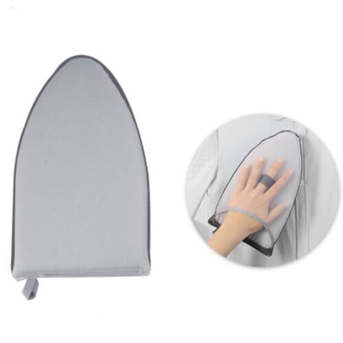 The product consists of a thick sponge interior to provide heat resistance and reduce scald risk during high-temperature ironing. It features a non-slip finger cot to secure the glove on the hand, and a back mesh pocket to promote ventilation. The design is lightweight and pointed to facilitate access to collars, sleeves, pockets, and other areas. It is suitable for use with fabric steamers, garment steamers, handheld garment steamers, travel garment steamers, and standing fabric steamers. The glove is ambidextrous and can be used on either hand, with breathable mesh material to minimize sweating during extended use.