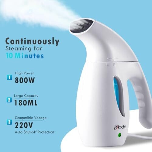 - 180 ml water tank supports up to 8–10 minutes of continuous steam for on-the-go use.
