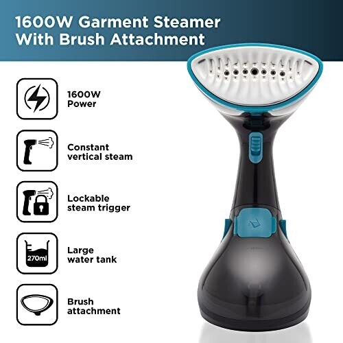 Black+Decker Bxgs22007Gb Linen Care 1600W Garment Steamer, Black and Aqua