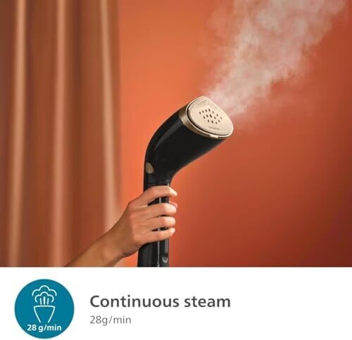 • Up to 28 g/min continuous steam to relax fibers and smooth garments fast.