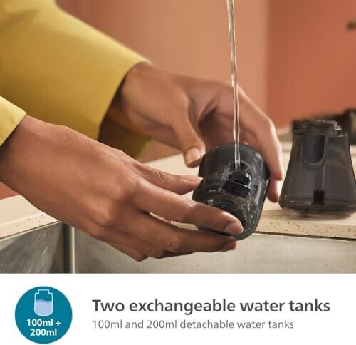 • Detachable water tank with 100 ml + 200 ml capacity for longer continuous use.