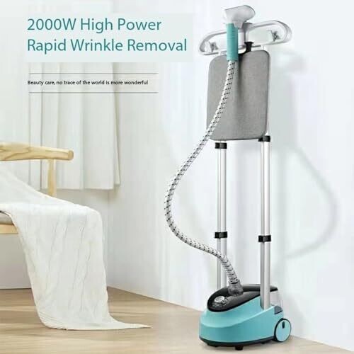 Elevate home wardrobe care with a professional-grade garment steamer offering fast wrinkle removal on a wide range of fabrics. 2000W power, height-adjustable ironing board, and dual-function head for steam smoothing or ironing, gentle on delicate fabrics, ideal for homes and salons.
