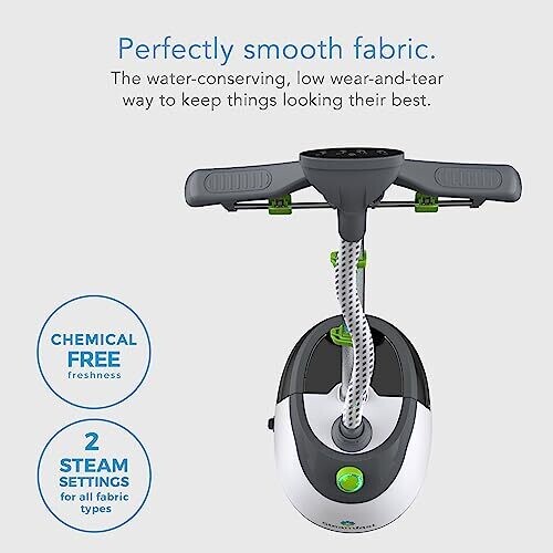 QUICK HEAT UP TIME — 86-ounce capacity removable water tank heats up in 45 seconds and provides up to 96 minutes of continuous steam with 2 steam settings. REMOVE WRINKLES AND REFRESH — Removes wrinkles and odors from clothes, linens, curtains, upholstery, and more, without the hassle of dry cleaning. The strong steam also reduces dust mite allergens, and kills germs and bed bugs as well. EQUIPPED FOR THE JOB — Comes equipped with a cool-touch fabric hose, telescopic pole, attachable fabric brush, collar helper, and clothes hook. 100% CHEMICAL-FREE — More effective and gentler on fabrics than ironing for all-natural garment care using the power of steam. SUPERIOR SUPPORT — Backed by a 2-year hassle-free and supported by a customer service team based in Perth, Australia.