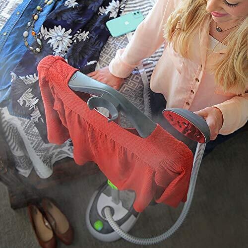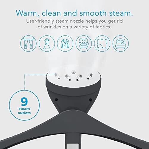 Powerful steam revives fabrics, removes odors, and refreshes wardrobes without chemicals. Fast heat-up and long-lasting steam quickly smooth wrinkles on clothes, linens, curtains, and upholstery. Includes a cool-touch hose, telescopic pole, fabric brush, collar helper, and clothes hook for convenience.