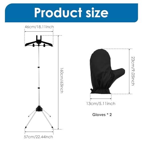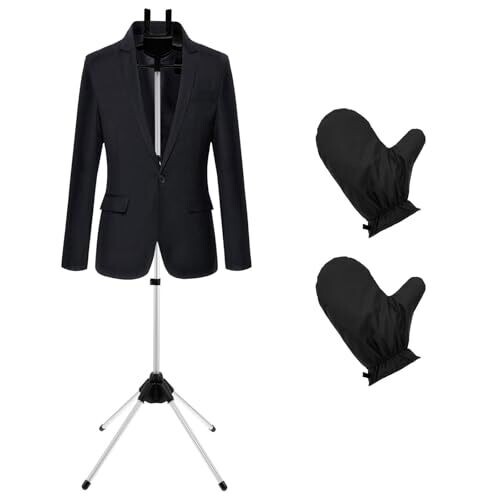 • Telescopic Garment Steamer Hanger Rotatable Stand with Glove, Strong Load Capacity (Black)