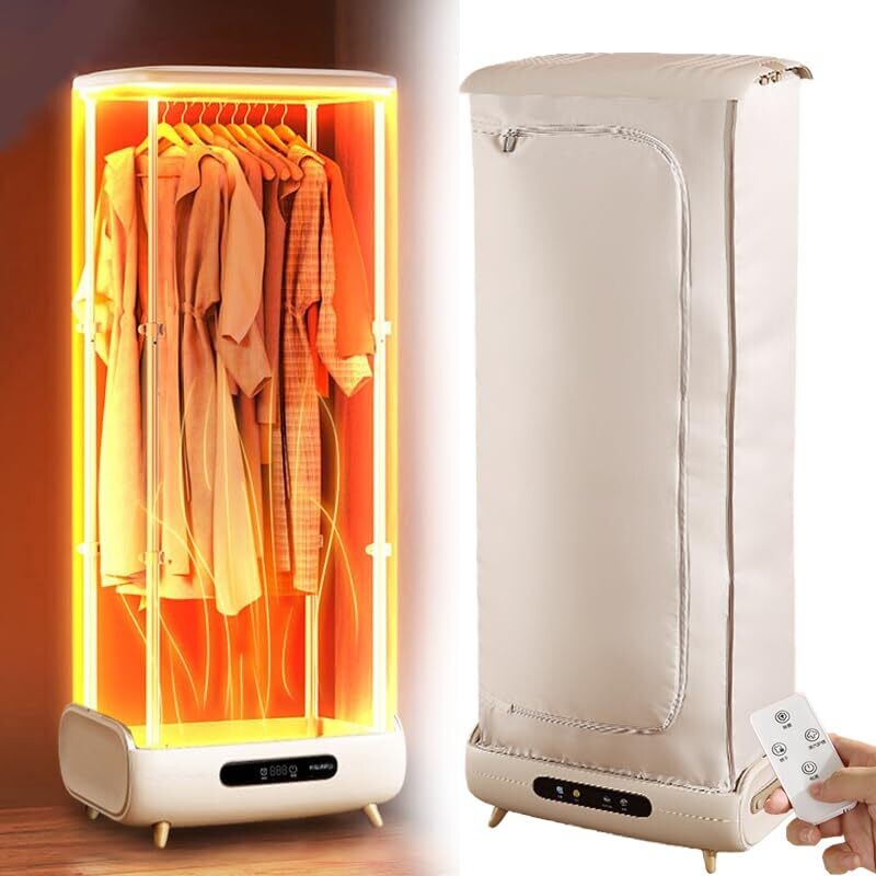 provides all-in-one laundry care by steaming, smoothing, sanitizing, and drying garments when hung inside the unit, potentially reducing dry-cleaning requirements.