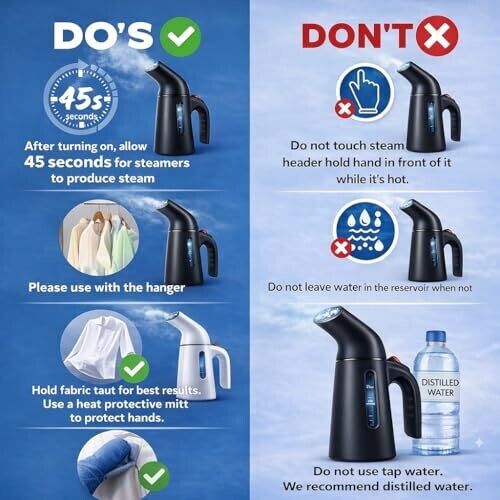 • Experience rapid wrinkle relief with a powerful handheld garment steamer designed for on-the-go refreshing and flawless outfits.