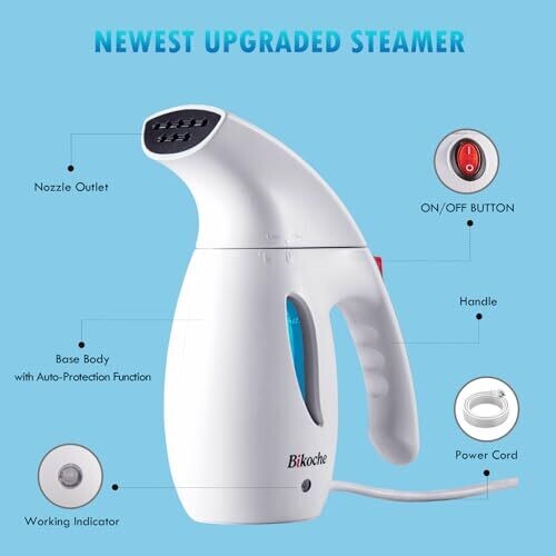 Bikoche Garment Steamer Iron, 4-In-1 for Clothes, Auto Shut-off - White