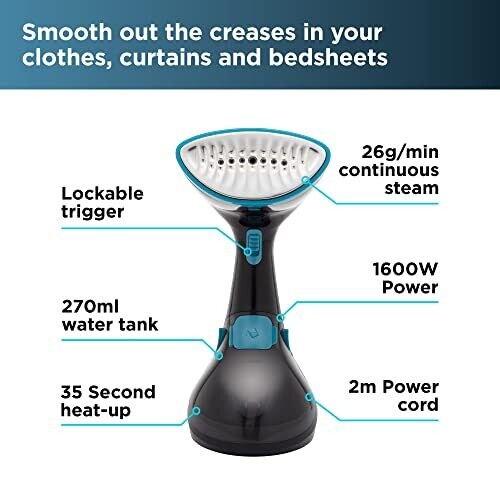 Black+Decker Bxgs22007Gb Linen Care 1600W Garment Steamer, Black and Aqua