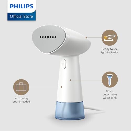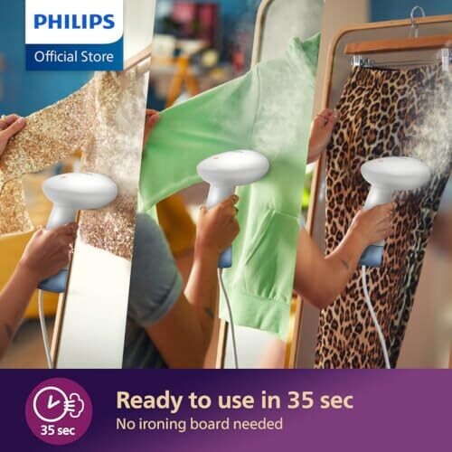 • Philips Handheld Steamer 1000 Series, 35 Sec Heat-Up, Compact (STH1000/10)