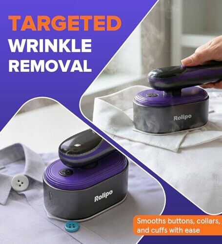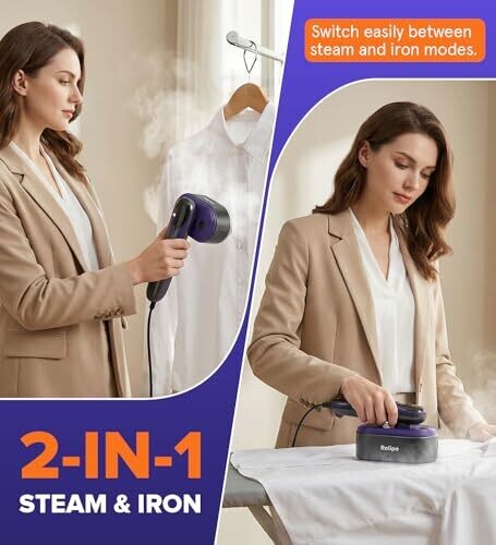 • Rolipo 2-In-1 Steamer & Iron for Clothes, 1200W Steamer with LED (Purple)