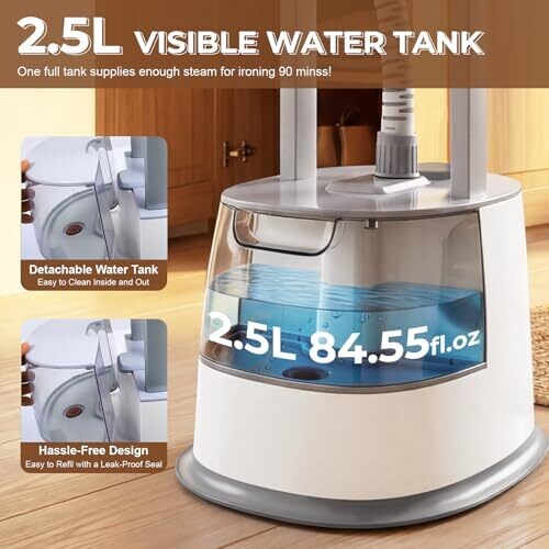 • Large 2.5L water tank supports long steaming sessions for homes, boutiques, or small hotels without frequent refills.