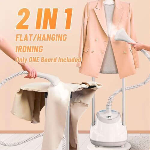 Shanghigh stand garment steamer for clothes delivers powerful 1800W steaming with adjustable double rod, flat and hanging ironing, 1.6L water tank, 30-second heat-up, and ten ironing modes to remove wrinkles at home.