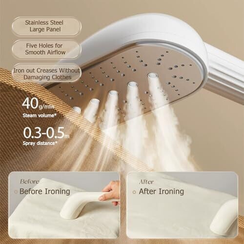 - Continuous steam output of 40 g/min to tackle wrinkles quickly.