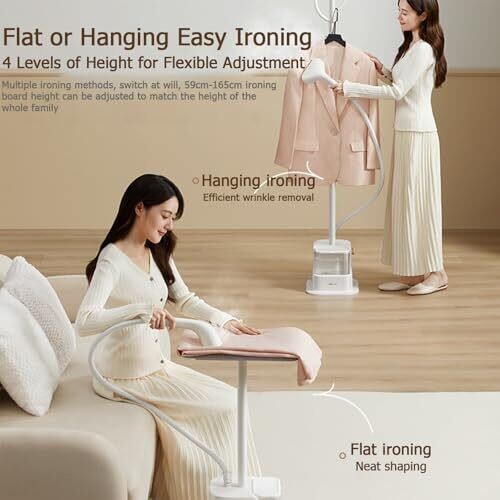 - 2-in-1 capability with vertical and horizontal steaming for versatile wardrobe care.