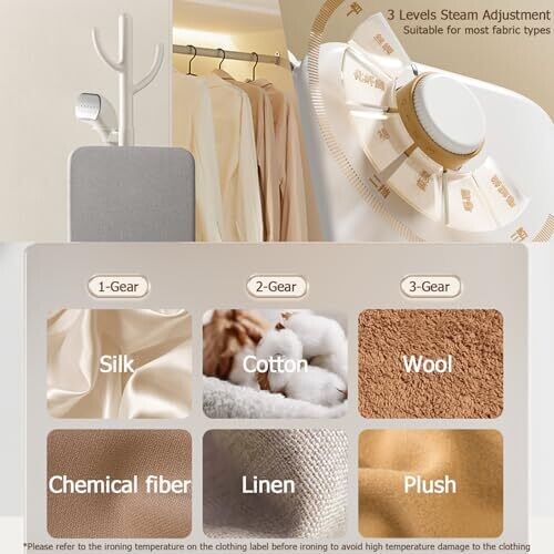 - Three adjustable steam settings to tailor fabric care from delicates to heavier garments.