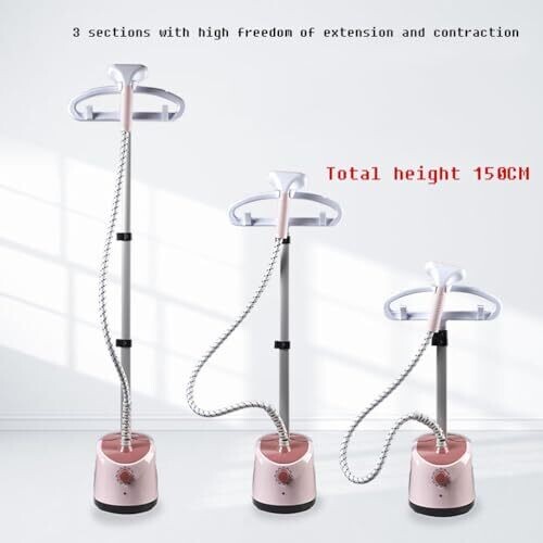 Powerful 2000W garment steamer with a portable standing design for easy at-home or travel use. Adjustable height from 70 to 140 cm, gentle on silk, plush, and fiber with 10 levels of temperature control. Large 1.6L water tank and safety features.